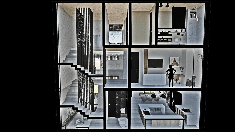 Se sustrajo partes del volumen para generar visuales espaciales con el entorno.