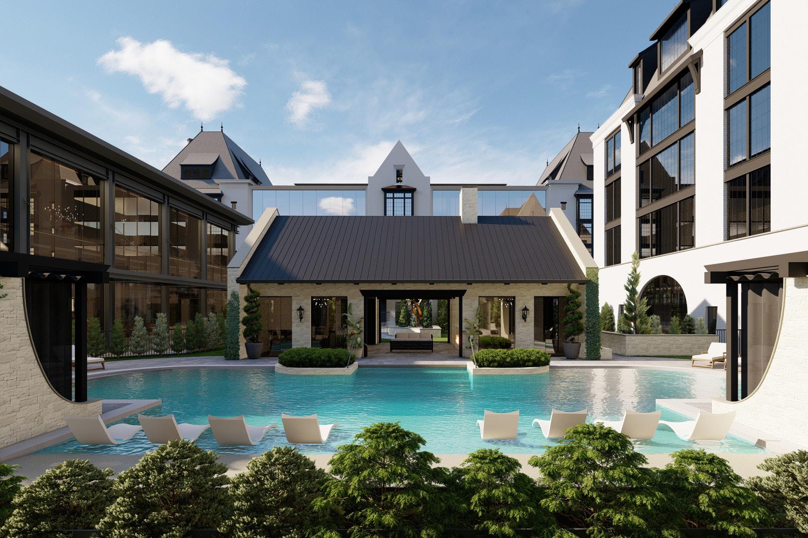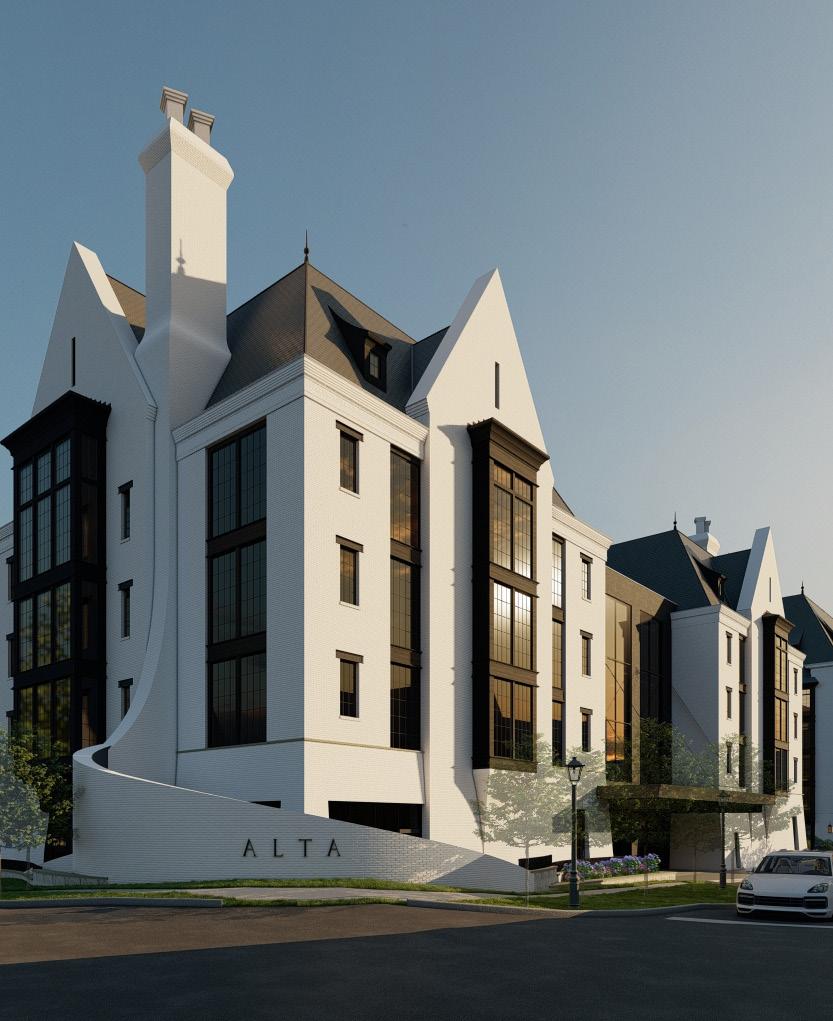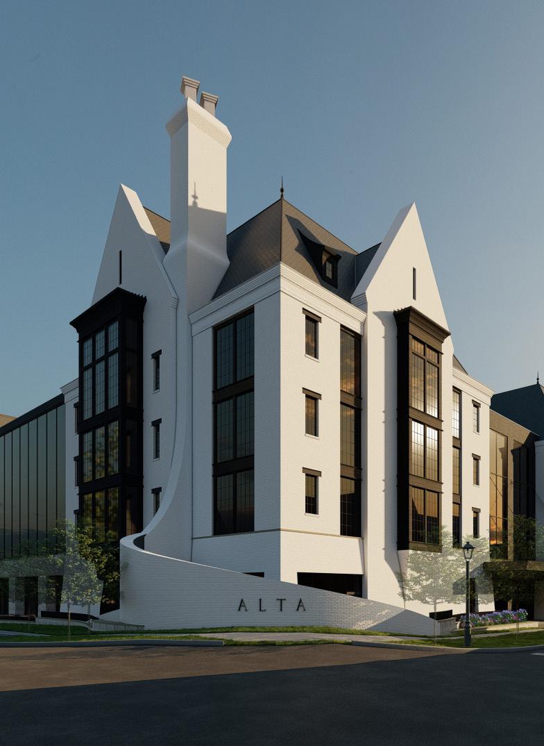 Located in Vestavia Hills, Alabama, Alta is a mixed-use development near a major regional hospital and key highway intersections. The project features 37 luxury condominiums, a 125-unit hotel, and 15,000 square feet of retail space. The design blends modern and traditional elements to create a distinct residential character for the hotel. Amenities shared by the condominiums and hotel include a pool, rooftop terrace and bar, ballrooms, spa, golf simulator, yoga lawn, private cabanas, café, upscale restaurant, and LifeTime Fitness membership with direct gym access. The hotel’s organic form serves as a defining feature of the development’s luxury identity.