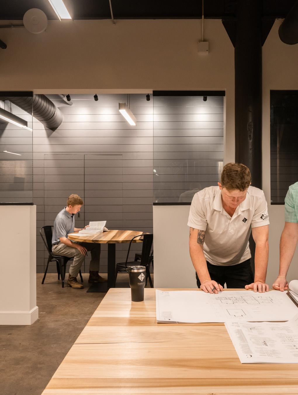As a national logistics provider, TA Services sought a headquarters that blended modern functionality with historic surroundings. Located off 9th Street NE and Railroad Avenue NE in Leeds, Alabama, the 15,000-square-foot building is constructed of mass timber, masonry, and wood—materials chosen for their warmth, durability, and sustainability. A portion of the structure fronting 9th Street NE was carefully rebuilt to match the original historic façade, utilizing reclaimed brick from the site preserving its architectural integrity. Inside, open work areas, collaborative meeting spaces, and private offices were designed to support the company’s dynamic freight brokerage, warehousing, and transportation operations. The result is a workplace that respects the past providing a highly functional and forward-thinking environment for this logistics industry leader.