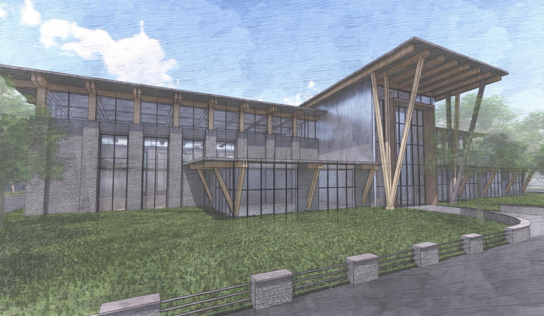 CAI conseptual images included in proposal to Hall County for the design of a multi-generational active life center that promotes health and wellness. Program Requirements included 2 basketball courts, a running track, fitness area, and administrative offices.