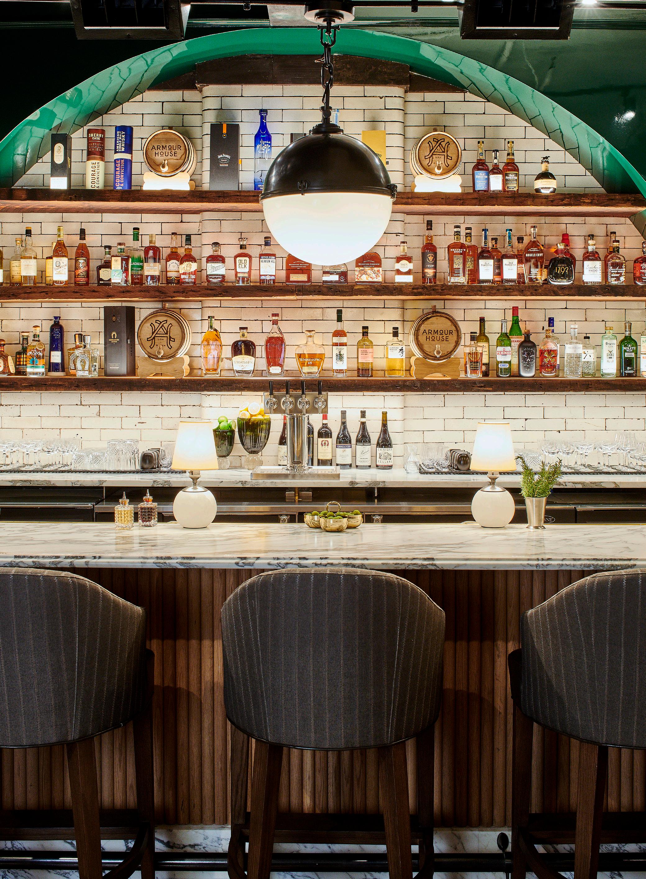 Pogo is a bar open to the public that is thoughtfully supported by a fully integrated back-of-house program, including dedicated storage, staging space, and a clear separation between public and private functions from the rest of the building. The goal was to create an environment that feels sophisticated, intimate, and warmly inviting—distinct from anything Birmingham currently offers. To achieve this, a variety of experiences were layered within a single space, including traditional bar seating, open soft-seating groupings, and cozy, private stone booths. The project presented several challenges, most notably working within a historic structure while accommodating modern requirements for access and means of egress, as well as mitigating sound transfer from the active restaurant located above.