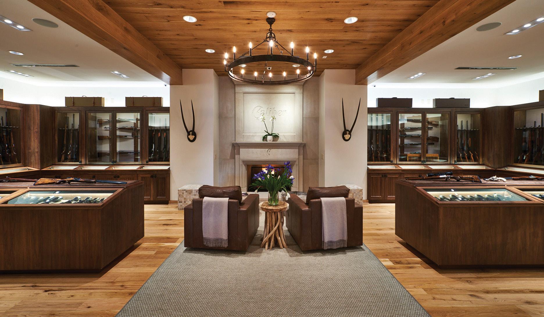 CAI was engaged by both the developer and City of Homewood to re-imagine the 19th Century Depot. CAI’s commercial approach reflects the aesthetic of their residential work in utilizing natural materials, while elevating simplistic but sophisticated design. The interior was designed to mimic a hunting lodge through warm knotty oak floors and ceilings, custom iron light fixtures, and a central double sided fireplace. The fireplace offers focal interest and a sense of comfort. The displays are uniform throughout as they are each custom mill-work pieces that integrate lighting to showcase Caliber’s luxury sporting goods. The success of this award-winning project is attributed to imaginative approach that not only addresses the building, but embraces client parking against city traffic challenges.