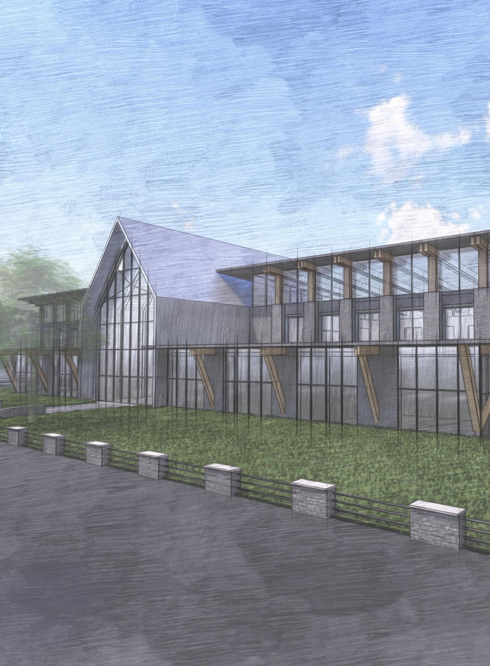 This project focuses on the renovation and expansion of an existing university greenhouse. Designed for year-round use, the open-air veranda features operable glass walls that allow the space to be fully enclosed when needed. The greenhouse serves as a gathering place for students and alumni alike, fostering community and engagement. It also strengthens connections to the broader campus through an amphitheater located below.