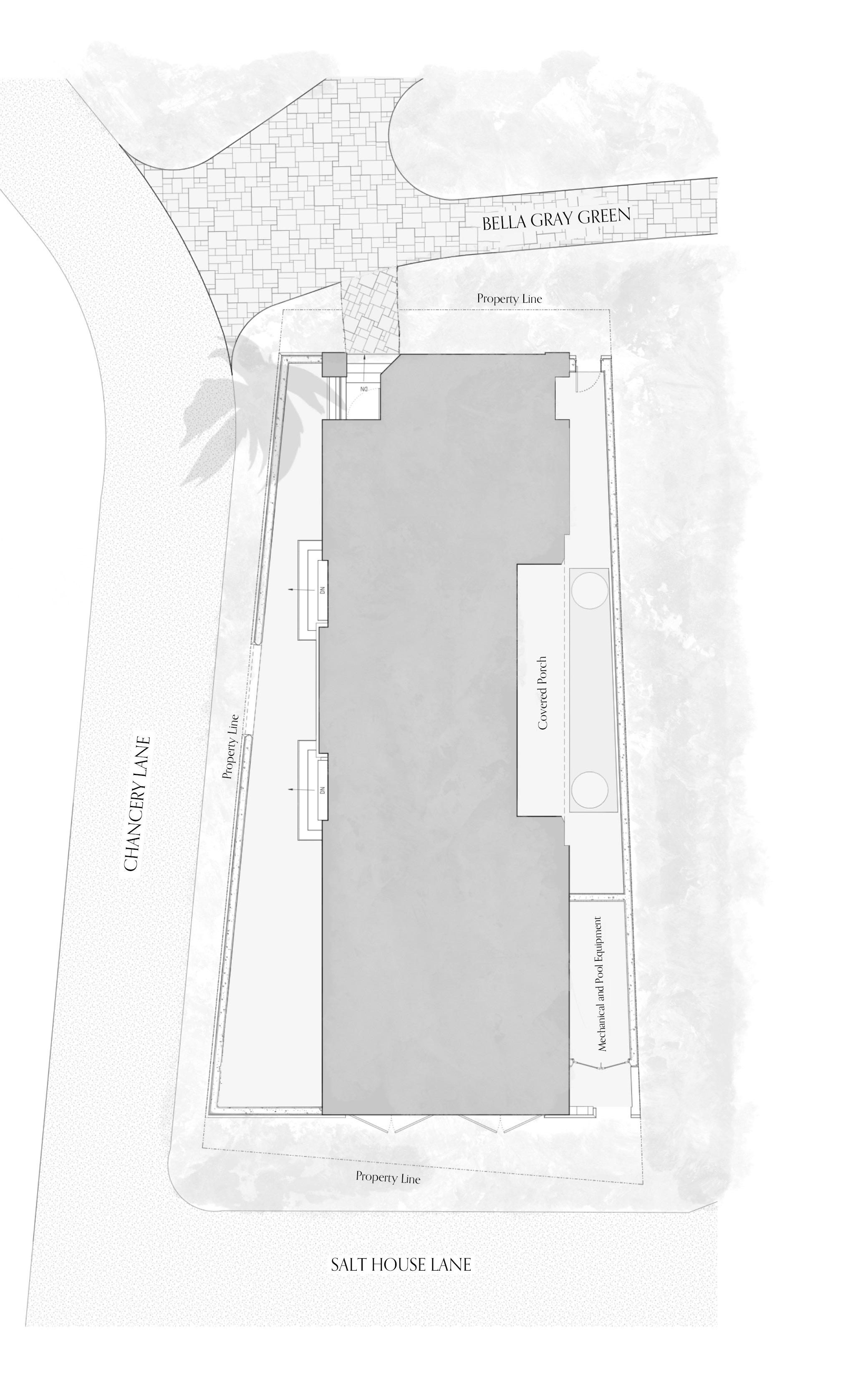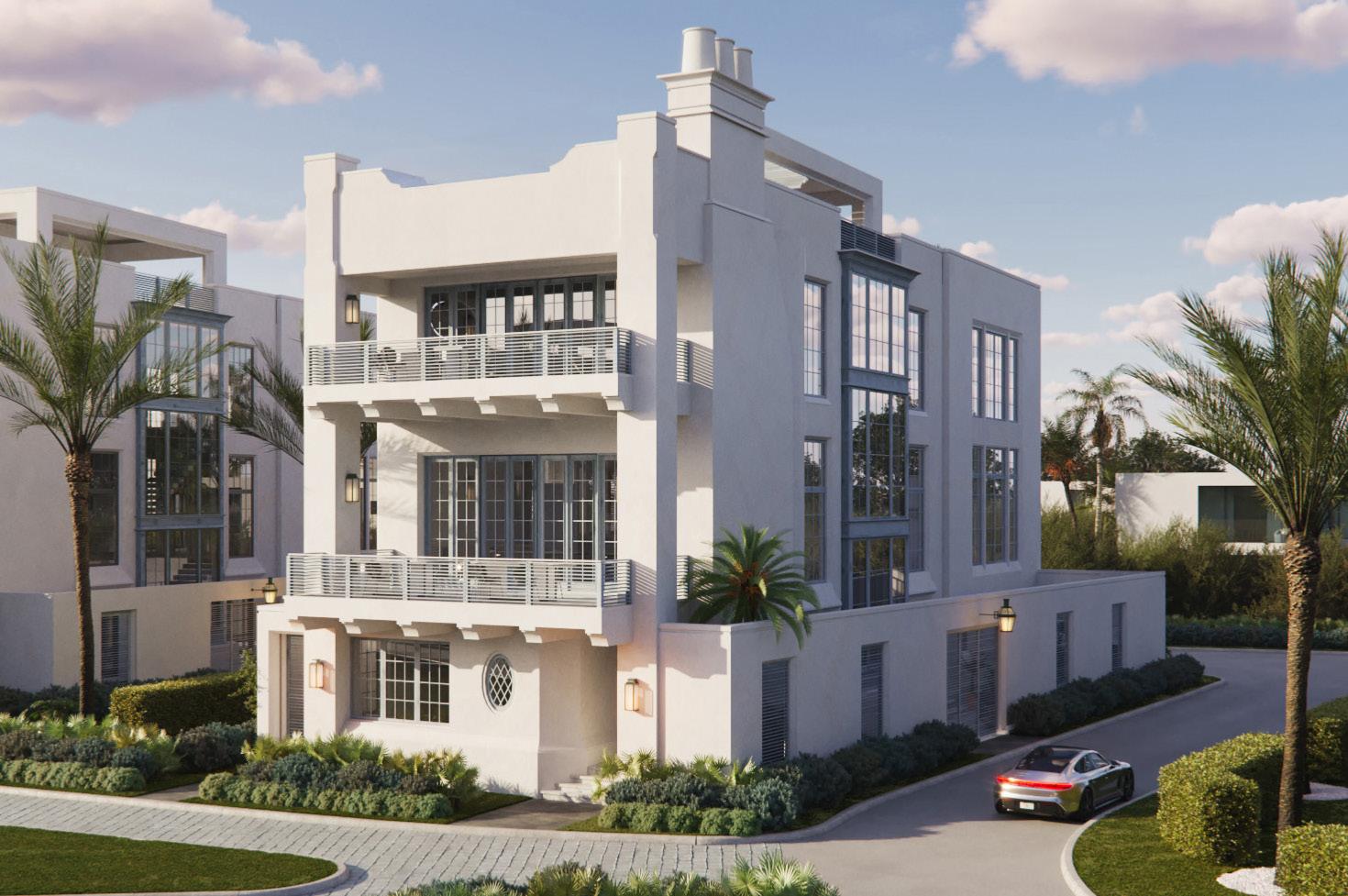 The exterior stucco forms are intentionally clean and simple. The sense of ornamentation and contextual belonging in the Alys community originates from special detailing of parapet, handrail, glazing and chimneys. These details complement the simple exterior forms creating the overall effect of subtle elegance. Each window was especially considered both within and without to absorb the beautiful surroundings. The entire roof is an accessible terrace complete with a pool, tanning ledge, firepit, lounge seating and outdoor kitchen, all purposefully designed to take in the ocean and neighborhood views at a higher and more private point.