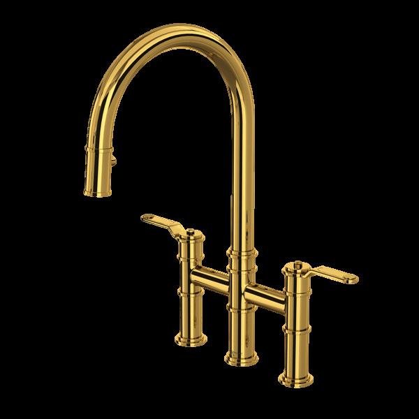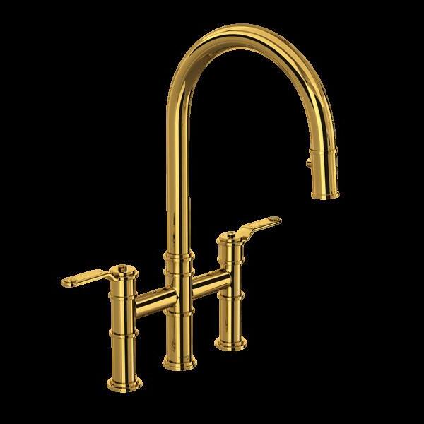 The primary bathroom brings a modern edge to the classical elements through the brass soaking tub, metal and wood accents, and custom steel doors to the shower and water closet.