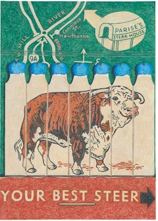 Sims Reed Gallery is thrilled to be collaborating with contemporary artist Aaron Kasmin for his fifth solo show. Inspired by his own collection of mid-twentieth century original matchbooks, some of which you can see on display, Kasmin brings new life to these ephemeral objects with his bold, vibrant and striking coloured pencil drawings.