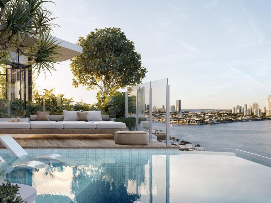 From the moment you step through the private gated facade and the grand double entry, it's clear this is a truly spectacular residence. Welcome a prestigious and bold waterfront oasis that sets the standard in luxury and elegance and is situated in one of the Gold Coasts' renowned streets of distinction where the beach, local shops, famous Tedder Ave, tram station and McIntosh Island are a short stroll away.