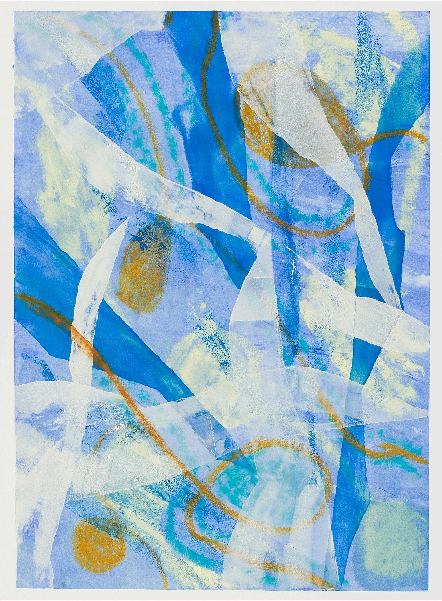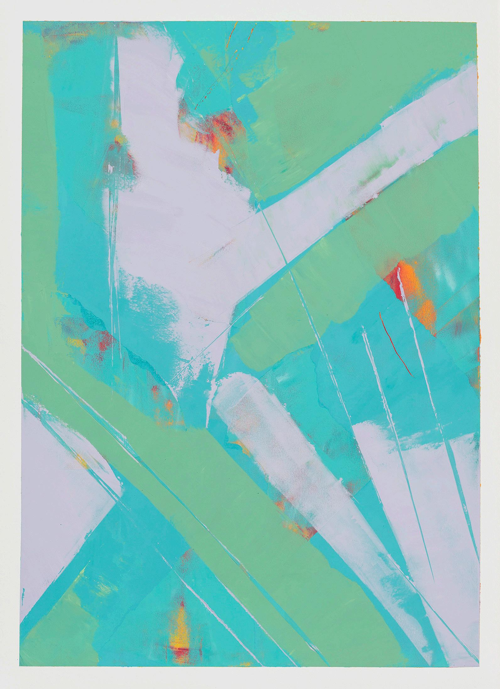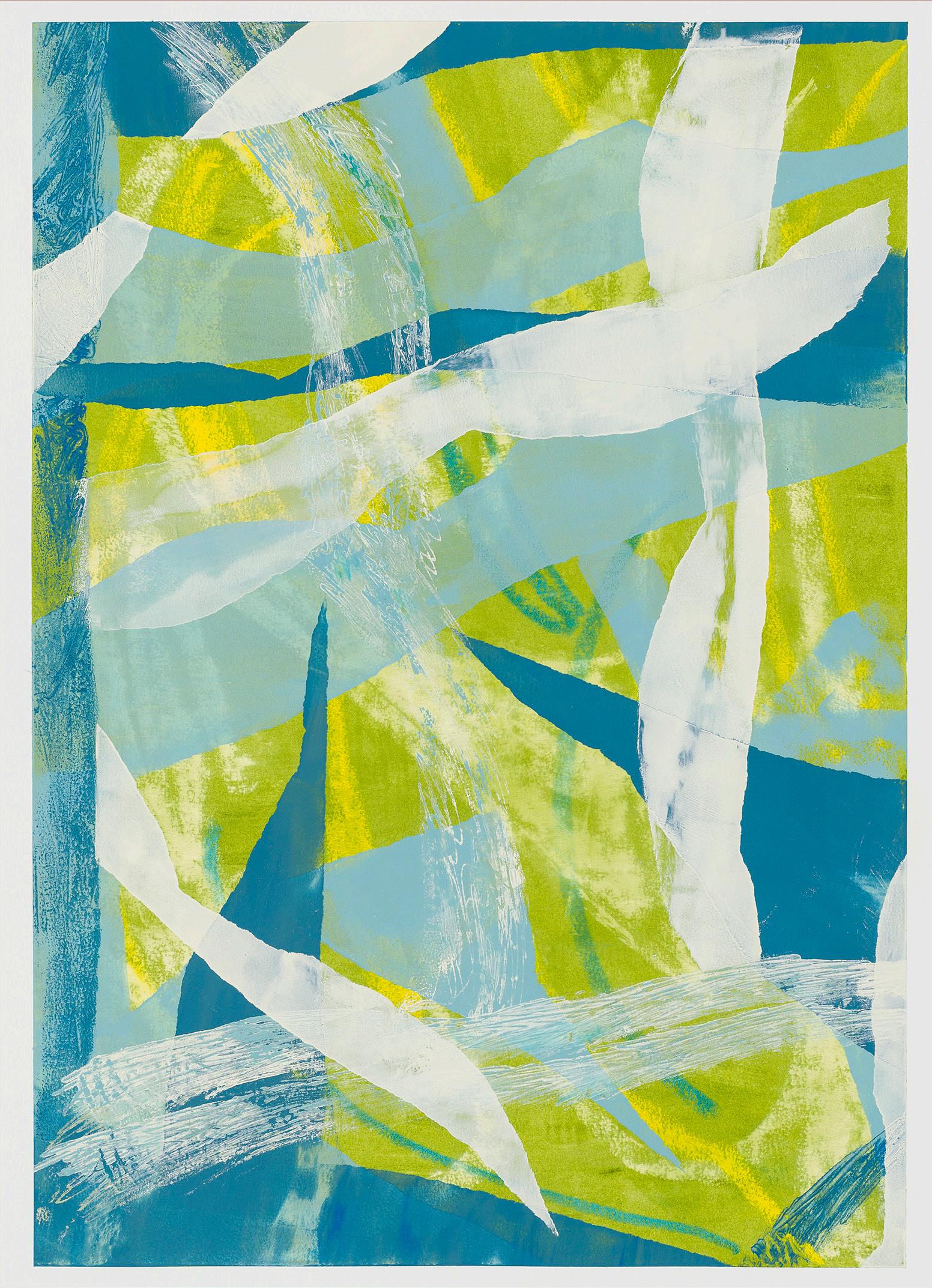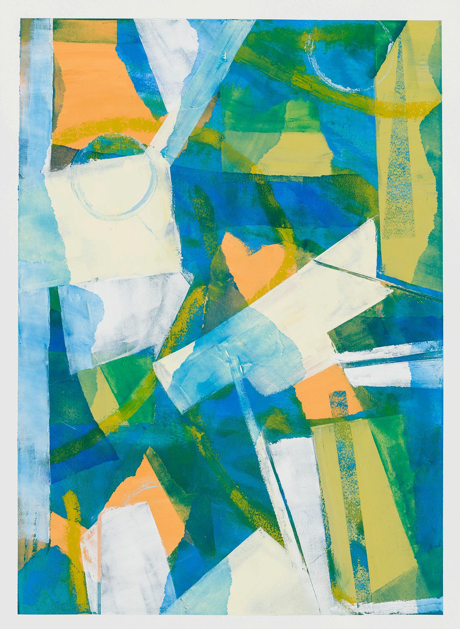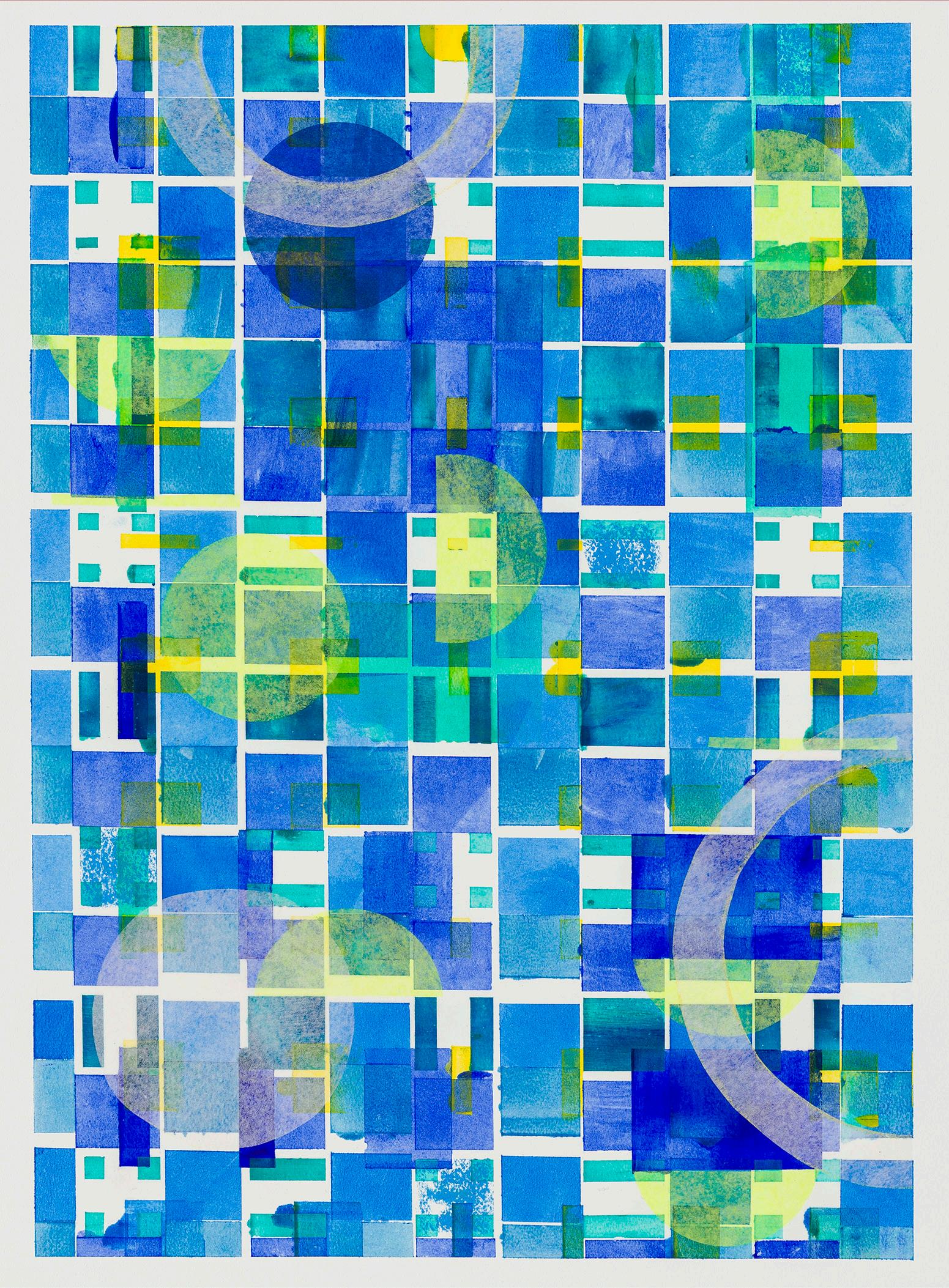 When I was at university, painting abstractly came naturally, however many years later it did not. It was a challenge at first, until I experimented with numerous processes and techniques that helped me loosen up. While working on these abstract works, the process is intuitive and experimental with each color choice and layer building towards the final composition. I love the unpredictable intersections between colors and shapes, the flow.