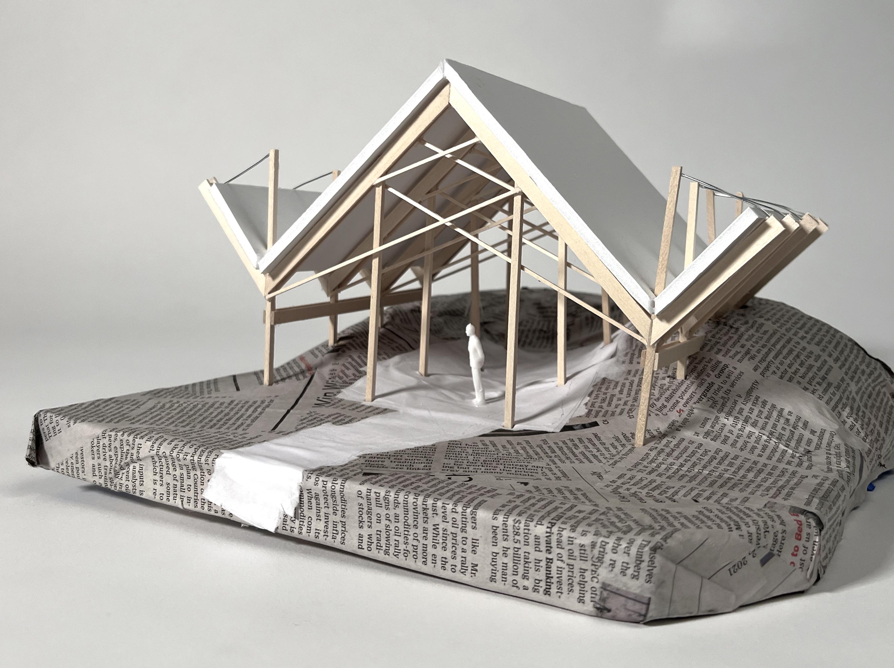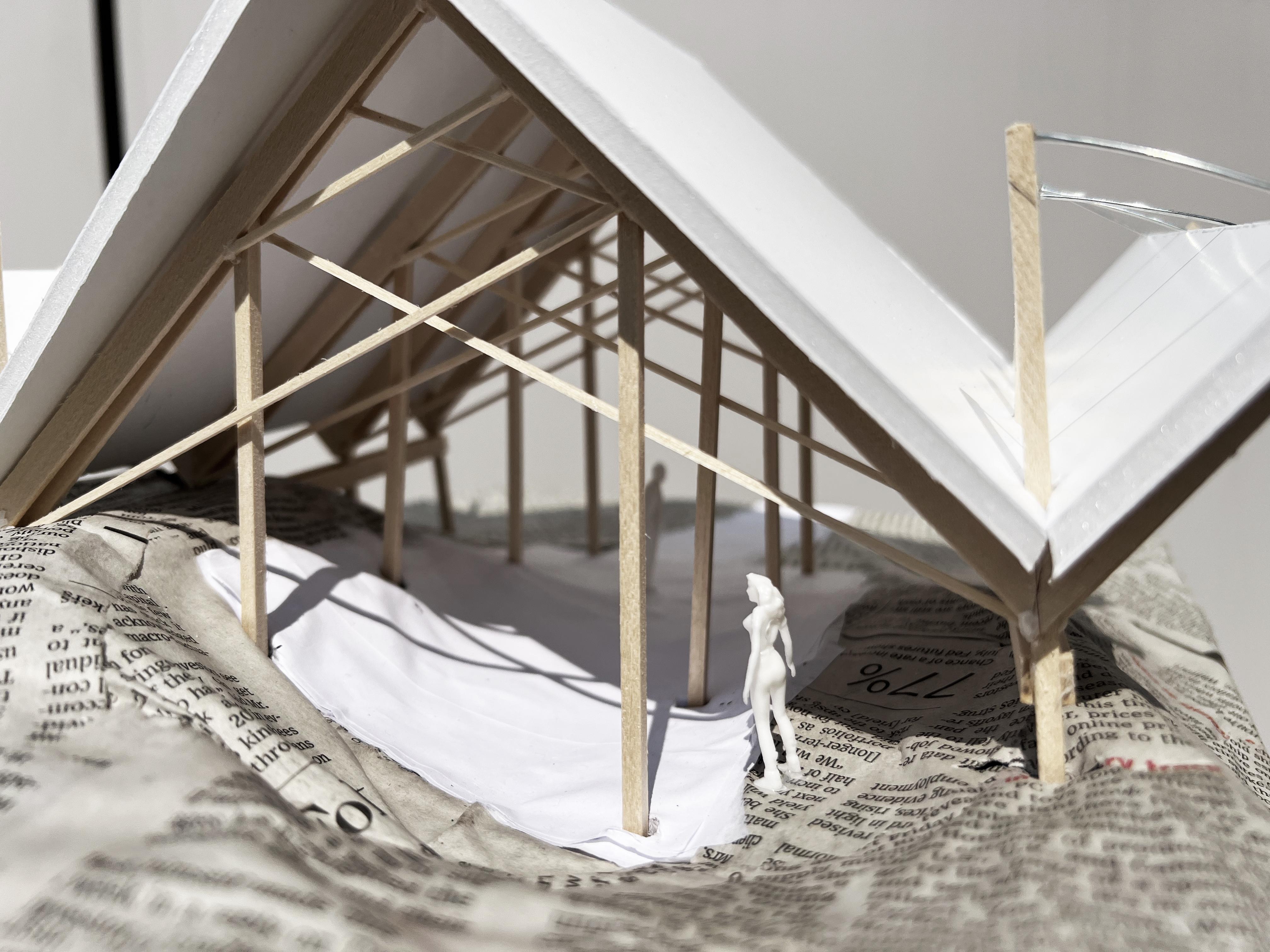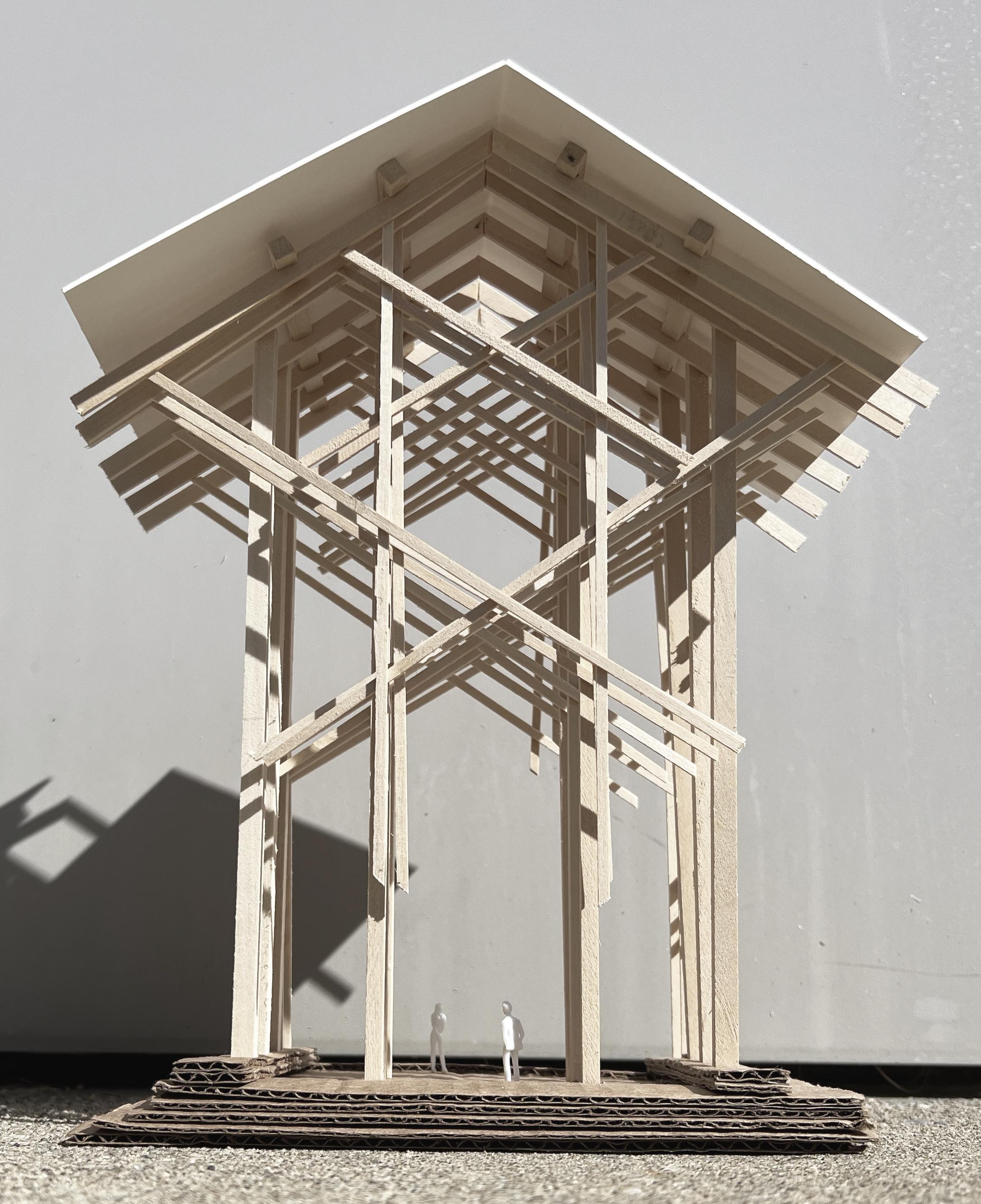The park pavilion provided a solution to connect MLK Dr. with a pond in Burnet Woods while also serving as a space to hold small concerts. The concept was derived from the structural framework of the Thorncrown Chapel, which was altered to provide additional enclosure. By building the pavilion into the site, the site and pavilion became one to form a beautiful enclosure.