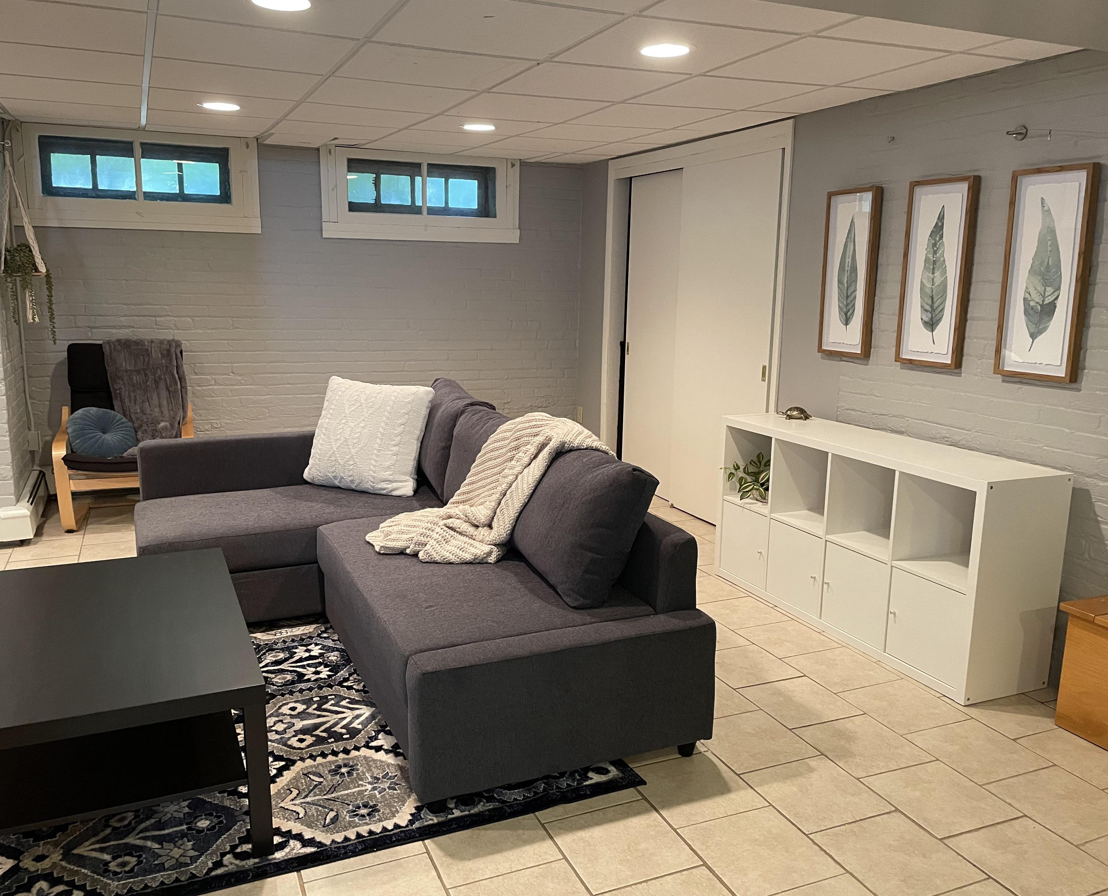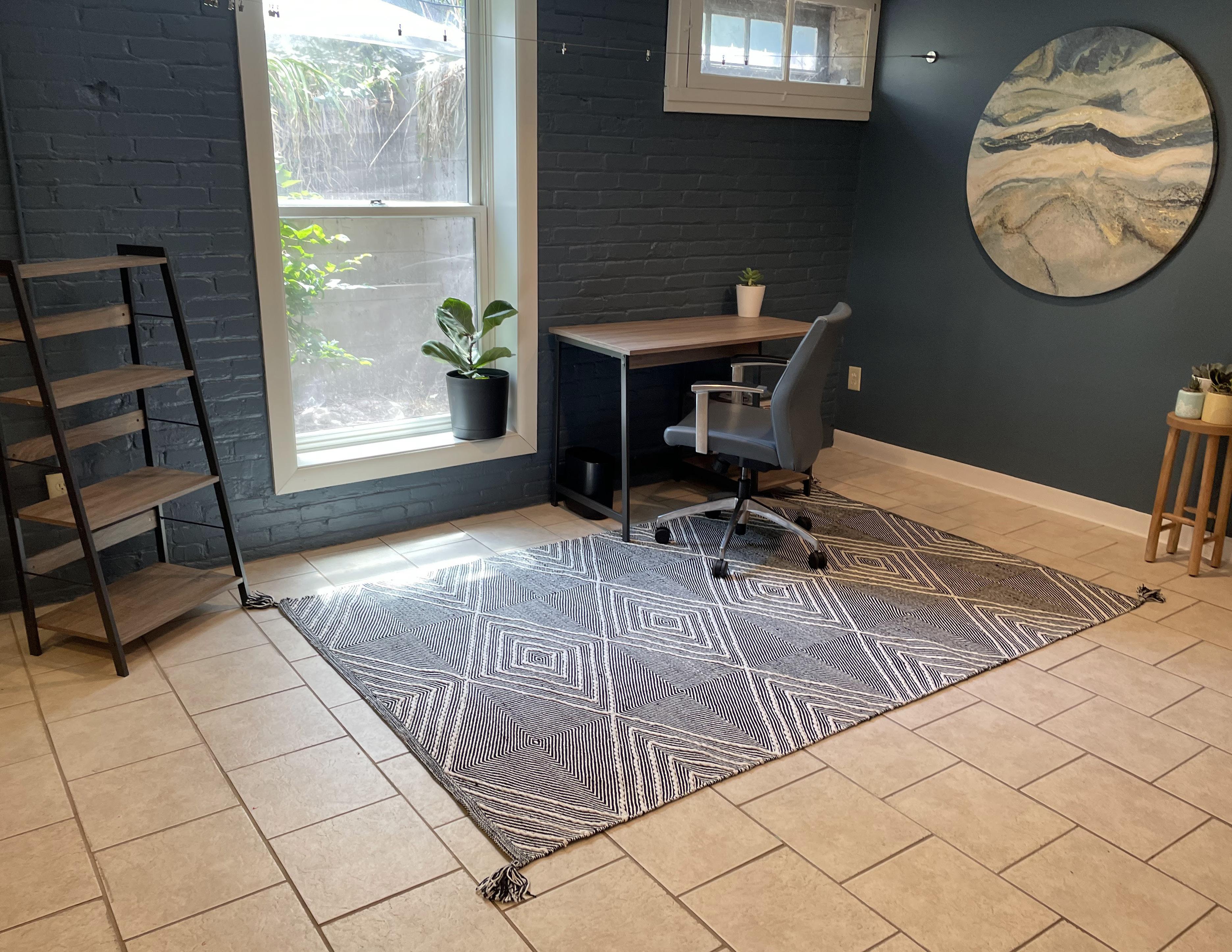 The brief for this project was to design a space for a family to gather and connect, along with a designated office space and workout area. A cool color scheme was chosen to brighten up the space due to the lack of light, while also providing a comfortable area to focus or relax. Plants were included throughout the space to breathe life and uplift the space. The design emphasized a comfortable space to escape.