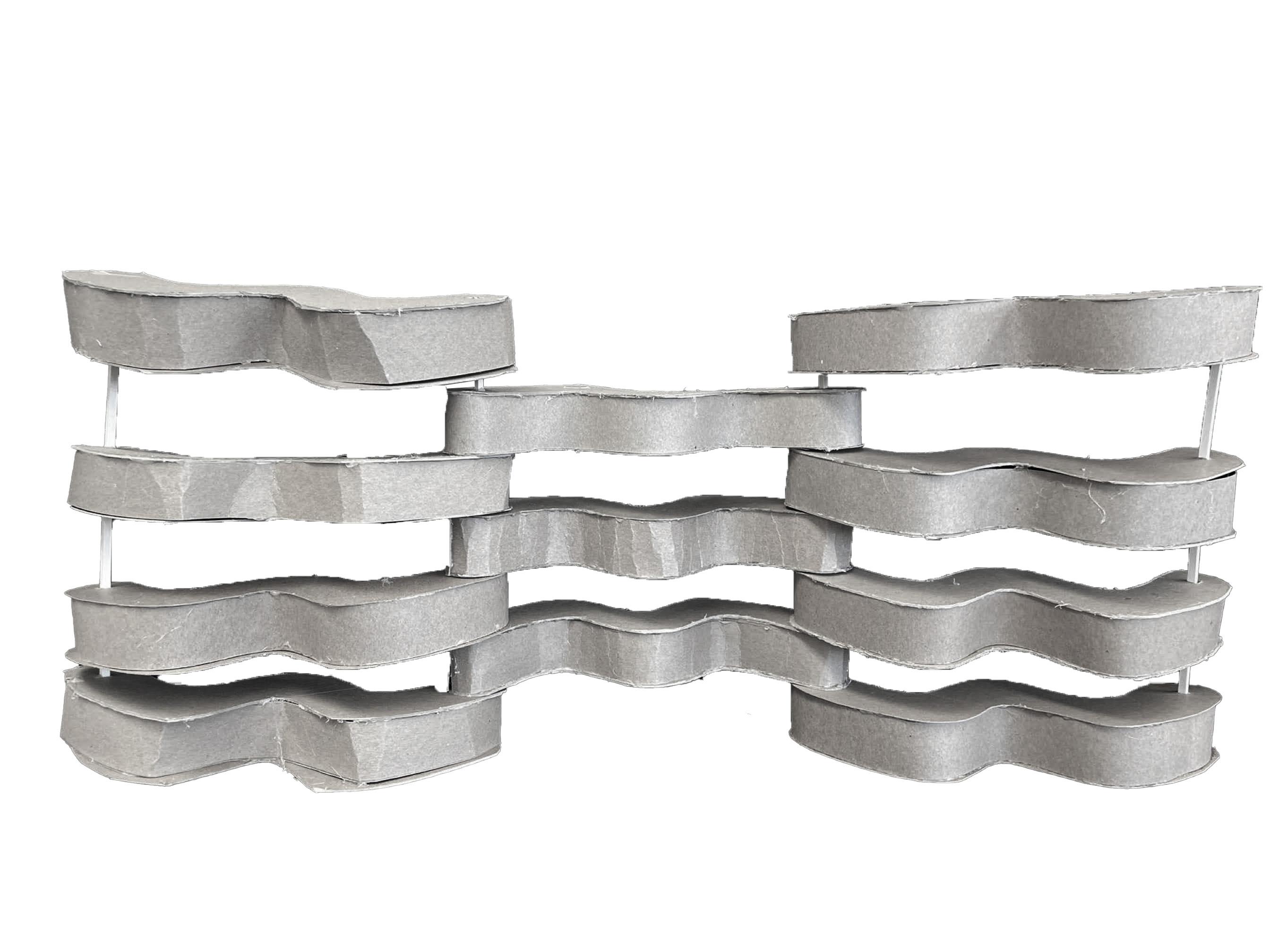 The Brick was created for the modular unit project. The goal was to reinvent the traditional brick and make something that could be replicated and form a wall. The form was created as a way to elevate the original design of the brick, while allowing it to still be used in building construction. By casting concrete in plywood molds, a unique and replicable form was created.
