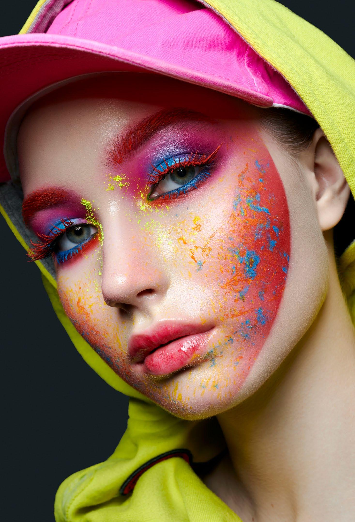 Makeup Takashi Ashizawa @tashinyc Hair Roland Brummer @rolandbrummer Mac Chromacakepure White, Cyan Blue Opposite Page Bobby Brown Opalescent Luxe Eyeshadow Mac Purple Hologram Glitter
