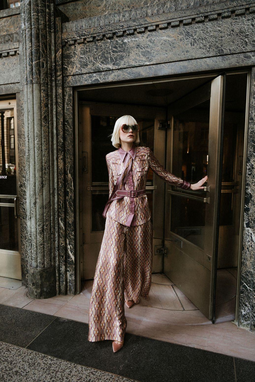 Vintage 3.1 Phillip Lim Slacks CAROLINA HERRERA Wrap Bow Top 1090.00 Gloves: Manuel Diaz opposite page LANVIN Cape-effect Ruffled Cape Dress Gloves Vintage Gucci Balenciaga Boots Black Belt Stylist Own