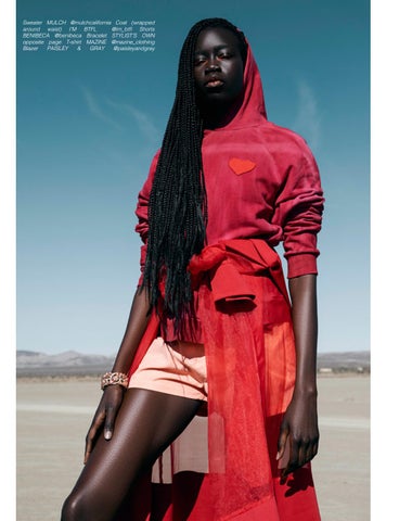 Sweater MULCH @mulchcalifornia Coat (wrapped around waist) I’M BTFL @im_btfl Shorts BENIBECA @benibeca Bracelet STYLIST’S OWN opposite page T-shirt MAZINE @mazine_clothing Blazer PAISLEY & GRAY @paisleyandgray