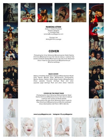 Editor in Chief & Publisher Graphic Designer +1 323-609-7090 ramona@LucysMagazine.com Summer Lee Writing/NYFW coverage
