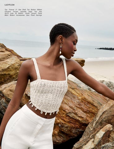 LUCY’S 234 Top Forever 21 Sea Shell Top Bottom Wilfred Cezzane Trouser opposite page Top Kes Aw19 Look 35 Bottom Clover Canyon Floral Bikini Bottom Accessories Zara Floral Earrings