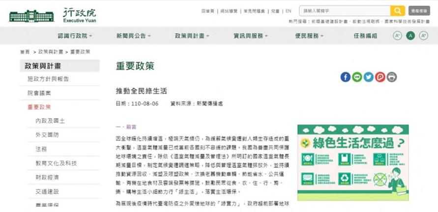 111年 3月30日 110年 4月22日 01 02 03 對外宣示啟動 全⺠綠⽣活 行政院院會報告 推動跨部會合作 全⺠綠⽣活接軌 2050淨零排放 109年 6月22日 重要政策 推動 全⺠綠⽣活 4 推動全⺠綠⽣活