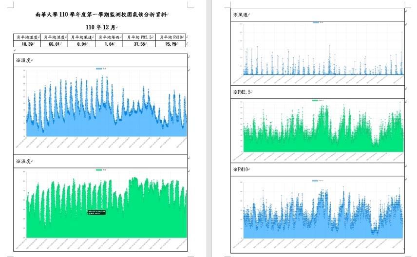 八、推動校內環境品質監測 戶外即時監測溫度、濕度、風向、降雨、PM2.5及PM10 2021年pm2.5濃度低等級之月份為4到10月 11月到隔年3月空氣品質較差,但仍維持低至中之等級,