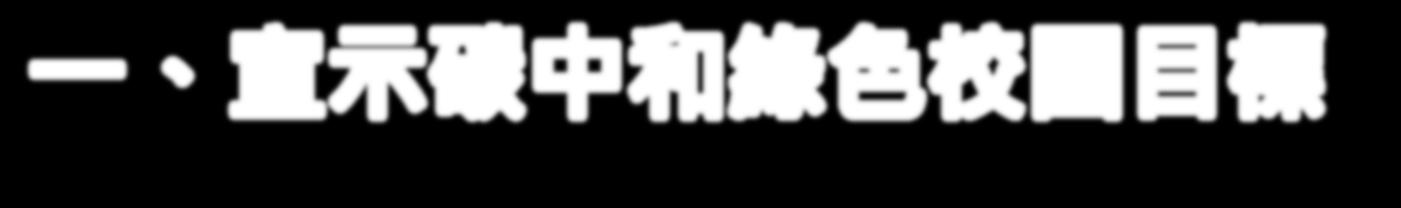 一、宣示碳中和綠色校園目標 宣告 2028年達成碳中和目標 成為環境永續校園的典範 111年3月16日 校務前瞻會議 ,校長率一級 主管宣告,將 於2028年達成 碳中和目標