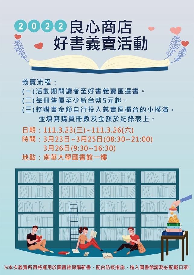 八、二手好書義賣活動 本校圖書館推動二手書義賣,2021年義賣1360冊,購買人次為265人 ,2022年義賣1386冊,購買人次為252人。