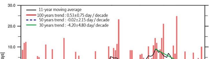 Fig. Long-term change trend of the length of winter and summer in Taiwan .............................................. ..................