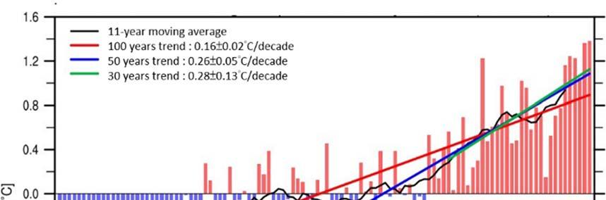 According to local observation and analysis, the annual average temperature in Taiwan increased by about . °C from to , and this temperature increase has accelerated in the past years and the past years (Figure ).