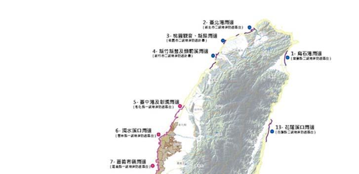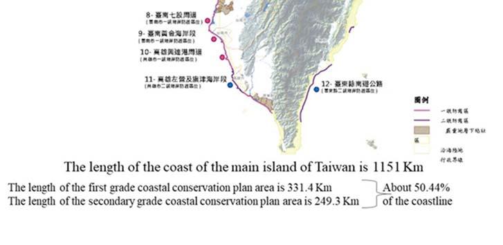The location of first and secondary grade coastal protection plans on Taiwan's main island Image source: MOI