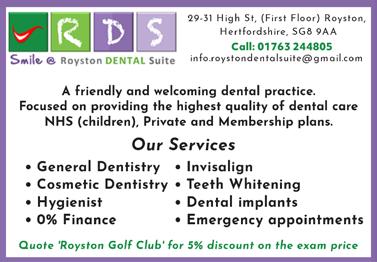 The current annual fees and details about all membership categories can be viewed on our website at www.roystongolfclub. co.uk. For more information on joining Royston Golf Club call 01763 242696.