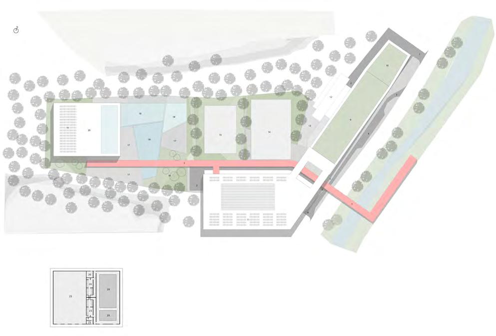 tions. For physical activities, the sports complex included both indoor and outdoor pools, a gymnasium, and various indoor and outdoor sports fields. To complement these facilities, we also incorporated a dental clinic, restaurant, and cafeteria.