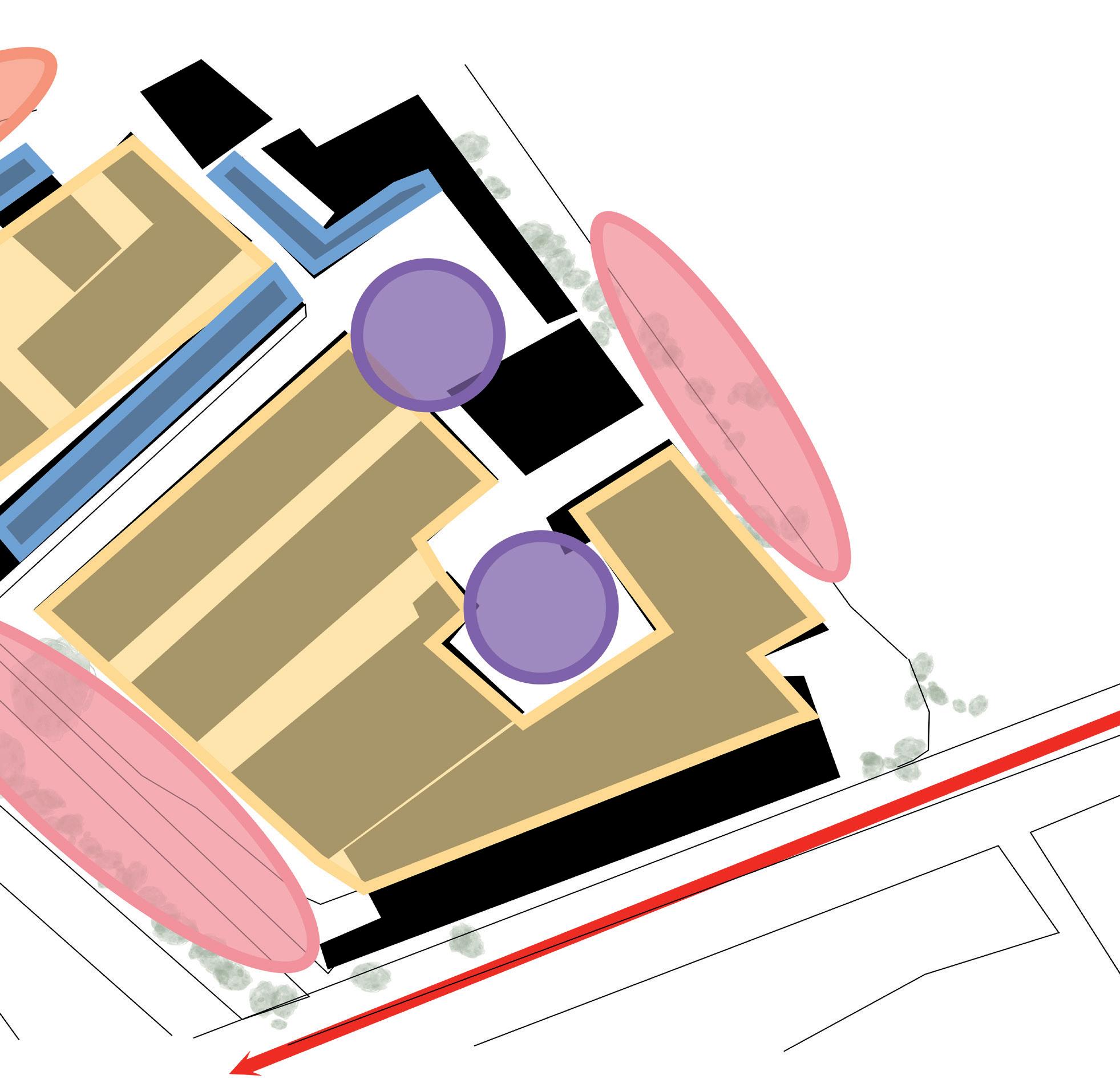 Les limites du site s’animent à la même allure que le marché, son influence va en effet au-delà de ses frontières. Les rues extérieures se remplissent de camions de marchandises, scooters, piétons, les marchands se positionnent le long des axes, faisant un lien continu avec le quartier. Cette appropriation des rues fait la transition avec le quartier et ses commerçants. Elle donne aussi au marché un caractère plutôt accessible à première vue, ouvrant ses portes vers la ville. Nous avons chacun pu remarquer différents types de marchés à Hanoï (halle permanente avec tranche horaire, marché de rue …) et à la différence des autres, le marché de gros de Long Bien ne laisse pas beaucoup de place aux « flâneurs ». S’adressant principalement à des professionnels, on ressent la pression du temps, dans un rythme de flux très soutenu.