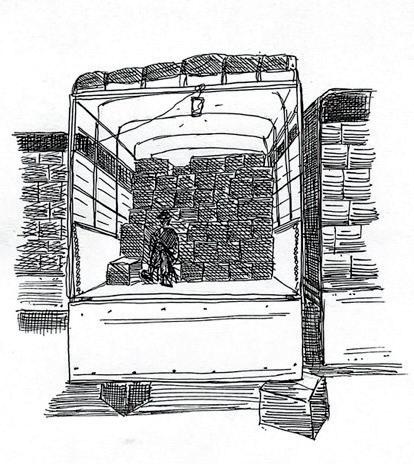 Relevé d’un box de vente et de son rapport à la rue principale du marché