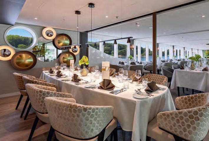 Im Restaurant genießen Sie Gaumenfreuden vom Feinsten — inklusive ländertypischer Spezialitäten, veganer Alternativen und frischer, saisonaler Zutaten aus den bereisten Regionen —, begleitet von korrespondierenden Weinen. Die Mahlzeiten finden in einer Sitzung statt.