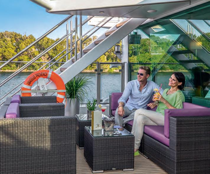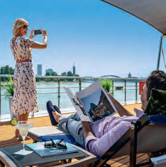 Die „River Terrace“ und andere, teils überdachte und von einer verglasten Reling umgebene Freiluft-Lounges und Terrassen bieten Schutz vor Wind und Regen, sodass Sie hier zu jeder Jahreszeit Genussmomente mit herrlicher Aussicht, Snacks und Getränken erleben können. 3