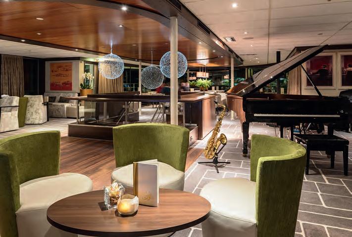 Als einer der vielseitigsten Orte an Bord ist die Panorama-Bar Ihr stilvoller Logenplatz für einen Drink und abendliches Entertainment — immer mit Blick auf die vorüberziehenden Flusskulissen. Mittags servieren wir Ihnen hier auch ein alternatives, leichtes Mittagessen.