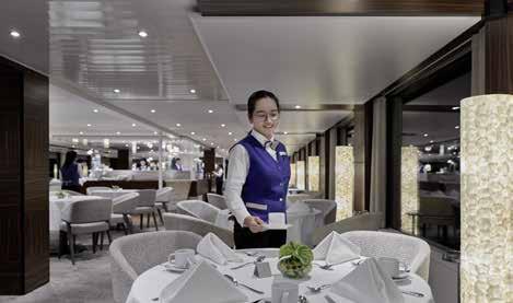 hustle and bustle in the restaurant. What happens then? “Sometimes, the waiters and waitresses meet for a quick chat in the crew mess before heading to bed, which is on board, of course,” she laughs.