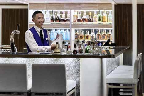 One deck up, it’ll probably take Putra, the ever jovial bar manager, a little longer to finish his shift in the Panorama Lounge. “We stay until the last glass runs dry. That can sometimes take a while, but there’s never a dull moment – and, besides, we can lie in in the morning,”