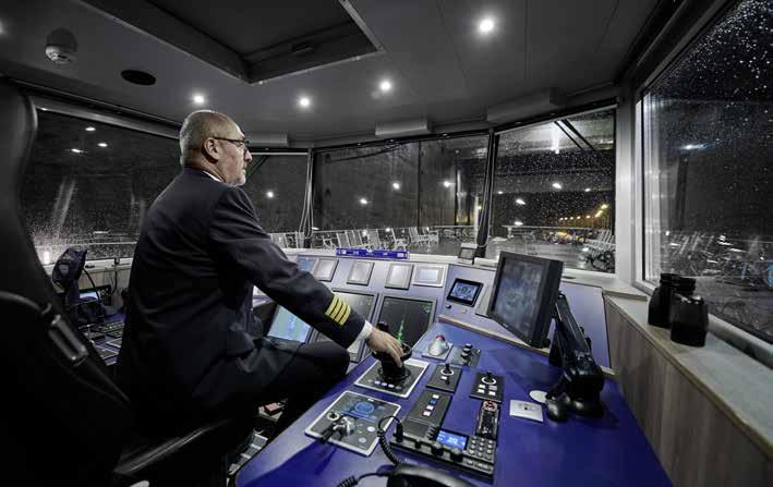 stretch of the Danube. There are always three skippers on every trip – when one’s asleep, the other two are awake, which is a setup familiar from the flight decks on long-haul flights. Between them they have GPS, two radars, four experienced eyes and six high-tech cameras. “With all this at our disposal, we don’t miss anything floating on the water at night,” Schor asserts.