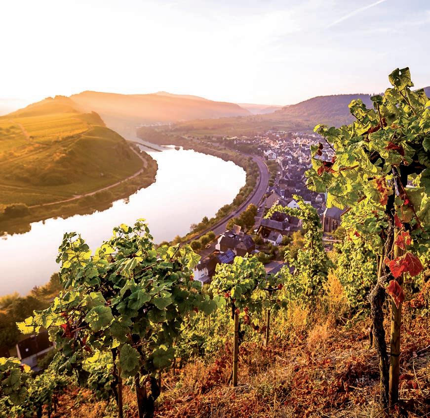 left: Wine growing along the Mosel above: Cochem’s landmark, the Reichsburg imperial castle