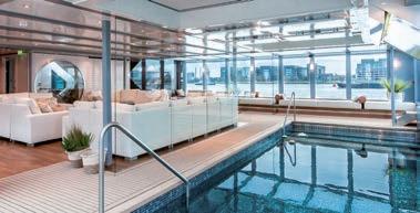 Panorama-Restaurant, AMADEUS Club, outdoor glass-shielded “River Terrace” on the bow as well as fitness room