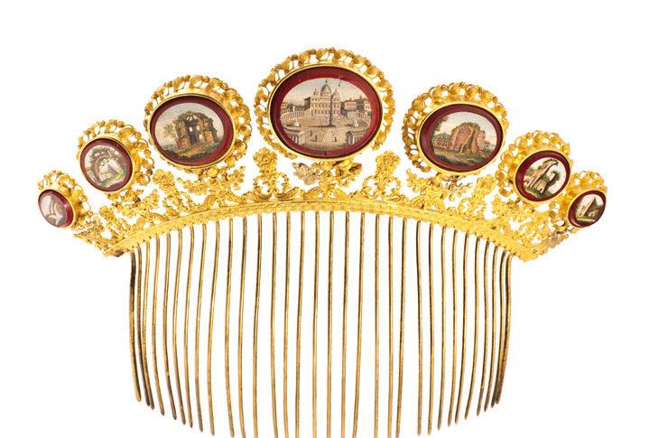 An elegant selection of head ornaments, taken from a collection of over a thousand that were amassed by the couple Mr and Mrs Antonini. These pieces come from all over the world, thus creating an exhibition that takes the visitor on a voyage of discovery of the cultures and multiple meanings of decorative combs.