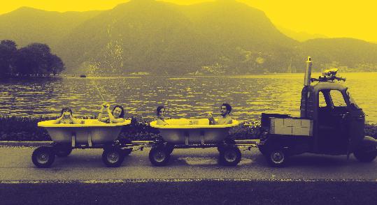 C’è un acquario su 4 ruote pieno di pesci rossi e c’è un tizio al volante che sembra un po’ strano… beh voi state in guardia, questo è quanto. There is an aquarium on 4-wheels full of red fishes and there’s a guy on the wheel that looks a little strange … well stay on guard.