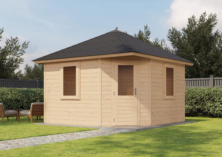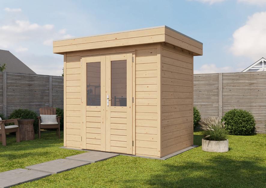 Alle vermelde prijzen zijn inclusief btw. Dit zijn adviesprijzen; neem contact op met uw lokale dealer voor de meest actuele prijsinformatie. Levering met kooiaap is € 150,- per levering, ongeacht het type tuinhuis. Prijzen gelden vanaf april 2025 tot een nieuwe versie van deze brochure verschijnt. Prijzen onder voorbehoud van wijzigingen en eventuele druk- of zetfouten. De maatvoering in de plattegrond is altijd leidend. Kleine verschillen met de in de tekst genoemde afmetingen zijn mogelijk.