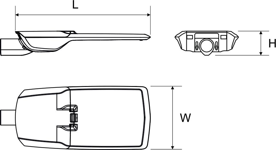 moc 23-157 strumień oprawy 3150-19050 lm skuteczność 157 lm/W temperatura bar wowa 3000, 4000, 5700 K temperatura prac y max +50°C CRI ≥ IP 66 IK montaż 09* na słupie lub na wysięgniku ø 40, 60, 76 mm obudowa aluminium wtr ysk iwane kolor obudowy szar y waga 6,8 - 7 kg rozmiar[L x W x H] 550x250x100 mm