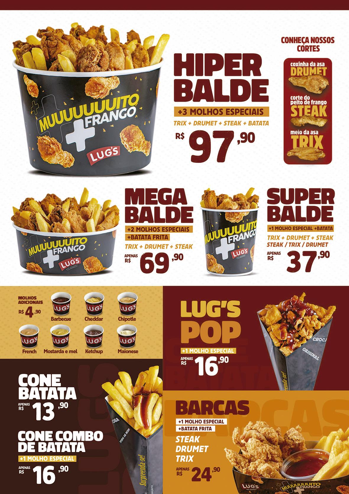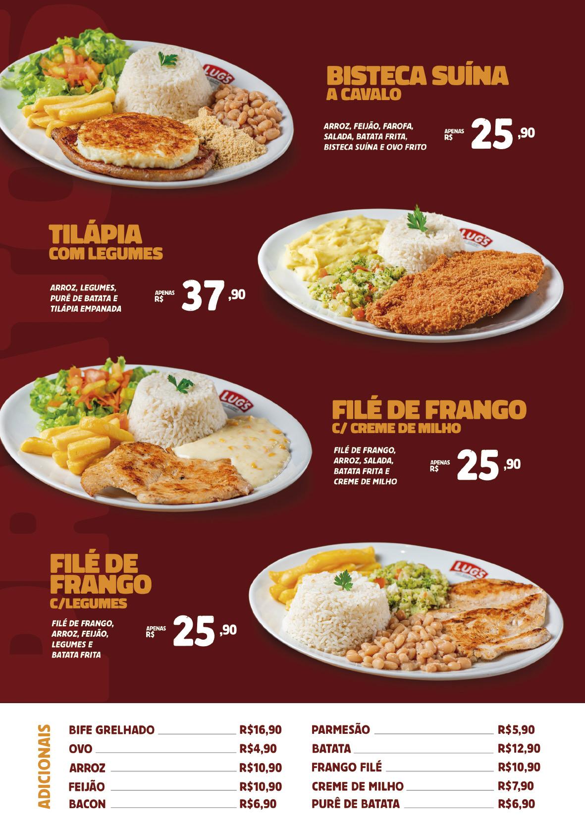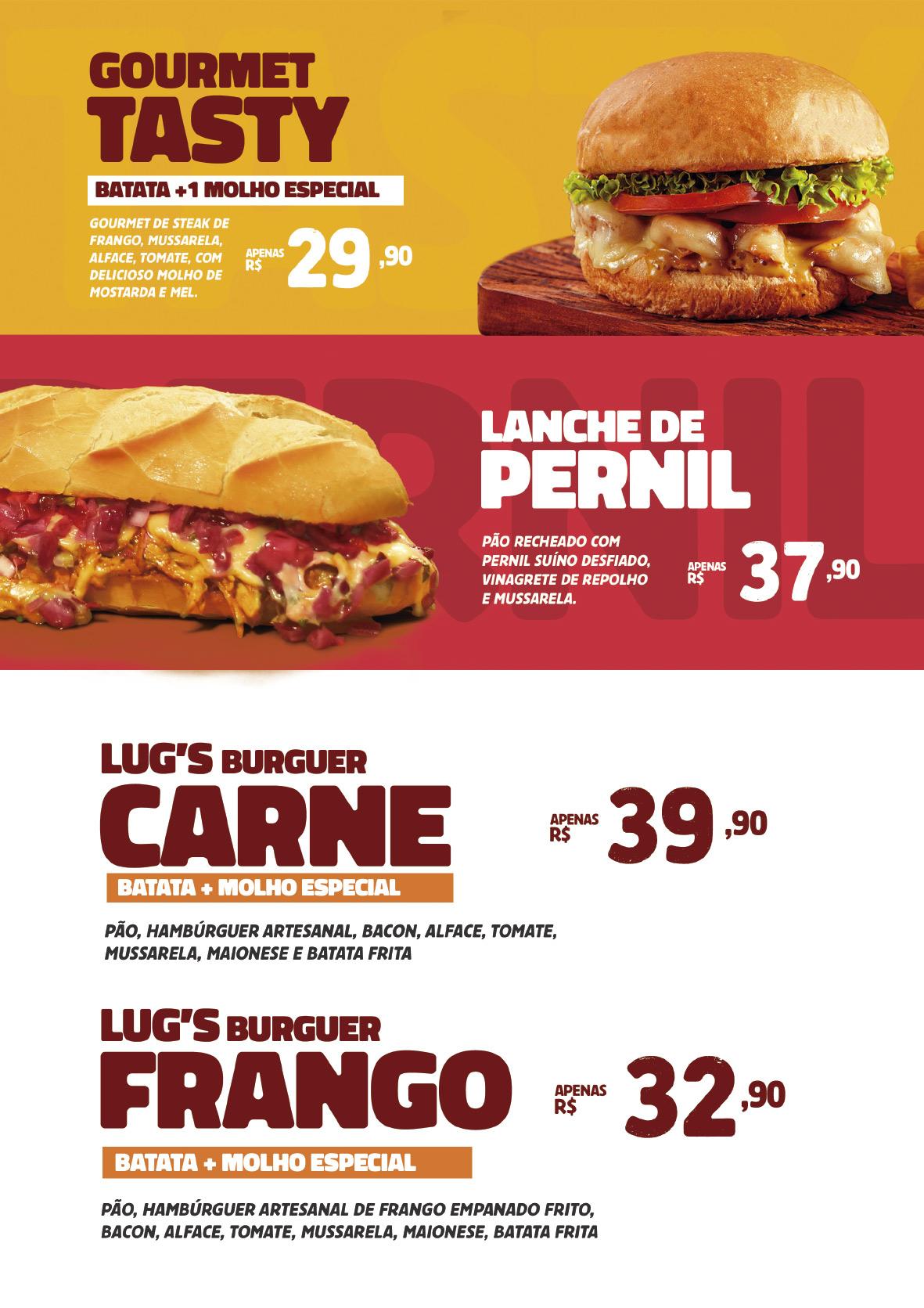 "Lugs Campina Grande, a maior franquia de frango frito do Brasil! O lugar ideal para o seu happy hour ou almoço executivo. Sabe aquela batata frita crocante por fora e macia por dentro? É nossa especialidade. Nosso cardápio oferece receitas deliciosas, de frango frito, criadas por chefes renomados. Também servimos pratos executivos e o mais delicioso strogonoff do brasil. Aqui é o lugar perfeito para apreciar chopps artesanais e trazer os amigos e a família."