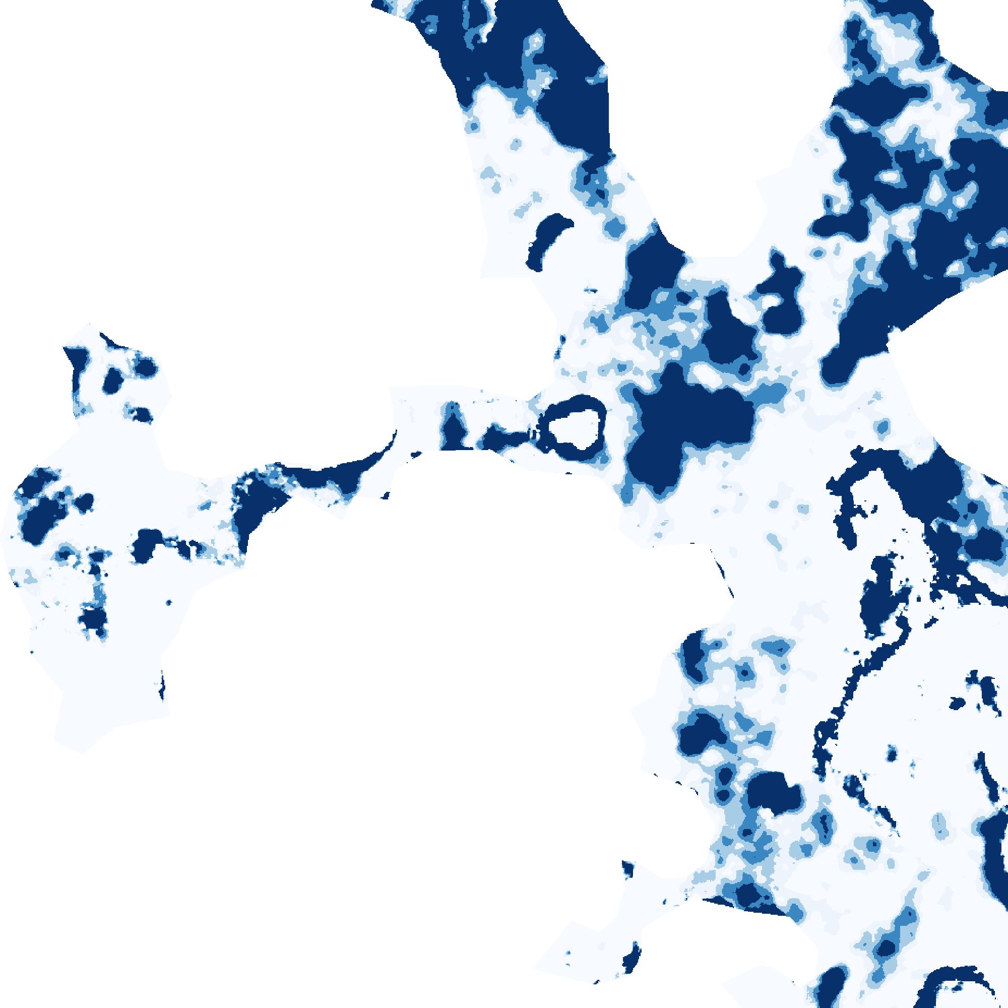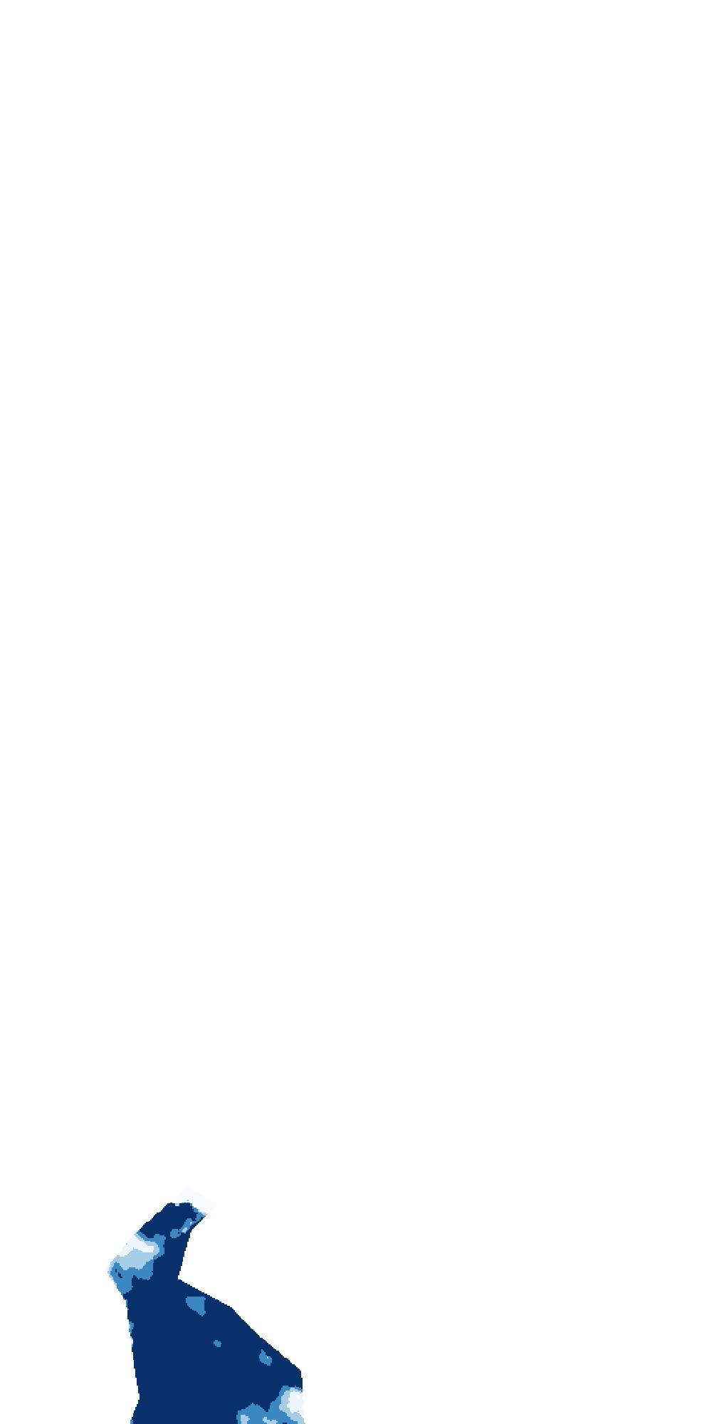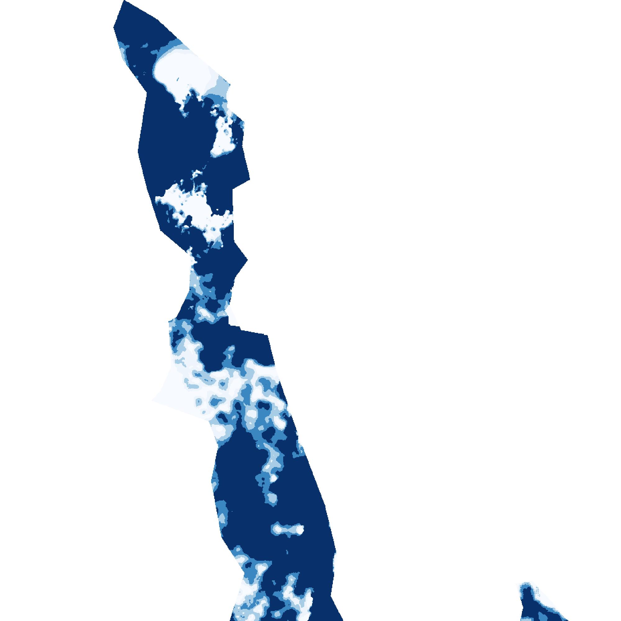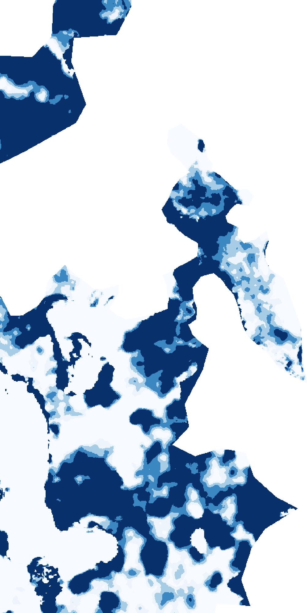 Nella tavola sopra, il ble scuro indica le aree dove l’altezza media dei rovi ‘trinciati’ era maggiore con 5 classi di altezza del materiale eliminato (in legenda l’altezza in metri), di fatto una media di circa 2 metri cubi per metro quadro.