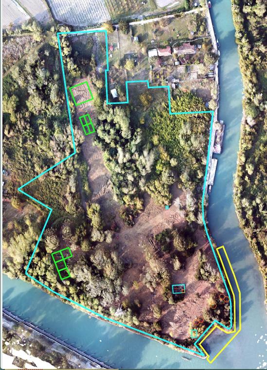 Il progetto prevede l’utilizzo del settore meridionale dell’Isola delle Vignole, circa 3,5-4 ha. L’area è stata utilizzata a scopi agricoli fino a poco più di vent’anni fa e si presenta con la tipica vegetazione che si ha nella ricolonizzazione spontanea di aree agricole.