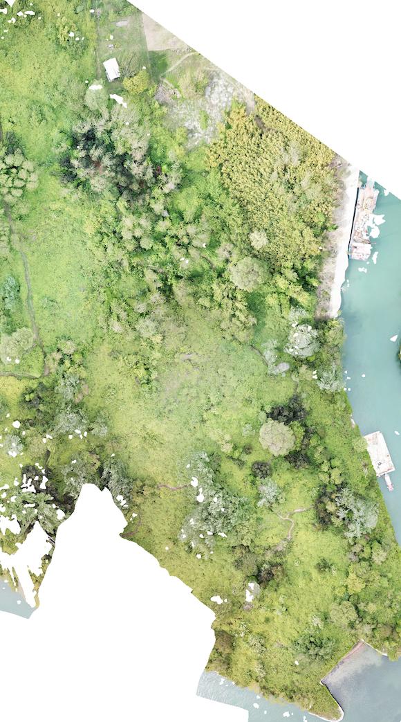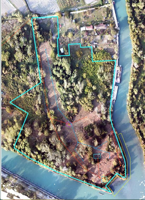 Un ortomosaico o ortofoto è una fusione di fotogrammi a colori acquisiti nadiralmente che è stata poi geometricamente corretta con un processo di ortorettifica e successivamente georeferenziata. In questo modo la scala di rappresentazione delle immagini diventa uniforme in ogni parte. Il risultato della elaborazione ha prodotto un’ortomosaico con risoluzione di 4 cm. di pixel, quindi di grande interesse per via della disponibilità di un quadro conoscitivo indispensabile per lo sviluppo del progetto.