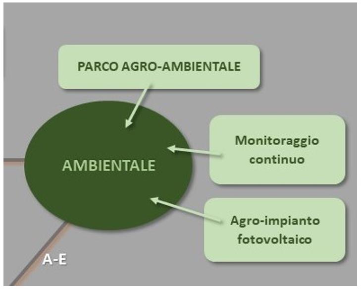 In particolare i due assi indicati sono costituiti dal primo che è relativo al tema delle produzioni orticole e delle variazioni dell’ambiente naturale, mentre il secondo è costituito dall’impatto dei flussi di energia pulita offerta dall’impianto agrovoltaico sulla struttura insediativa e sui comportamenti soggettivi della comunità locale, costituita prevalentemente da ‘nativi fossili’.
