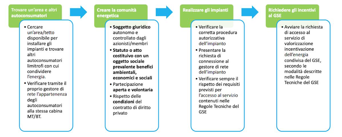 Questo è l’attuale processo di costituzione di una Comunità Energetica Rinnovabile, ma che verrà modificato probabilmente dal Decreto Legislativo del giorno 8 novembre 2021 n.°199 in attuazione della direttiva (UE) 2018/2001 RED2 del Parlamento Europeo e del Consiglio dell’11 dicembre 2018, sulla promozione dell’uso dell’energia da fonti rinnovabili.