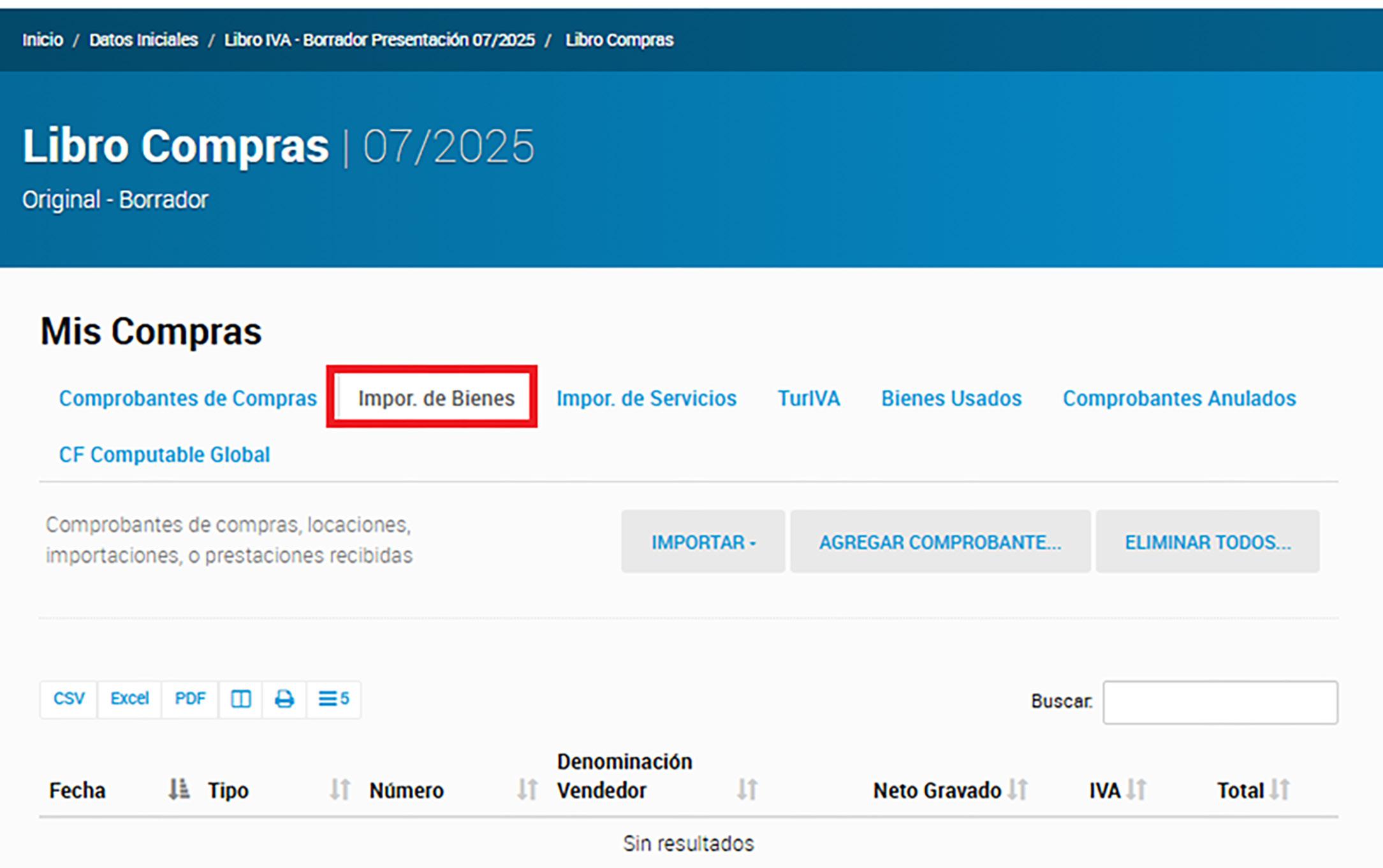 Es importante destacar que todas estas aperturas, tanto de compras como de ventas, se pueden importar por medio de un archivo “CSV”.